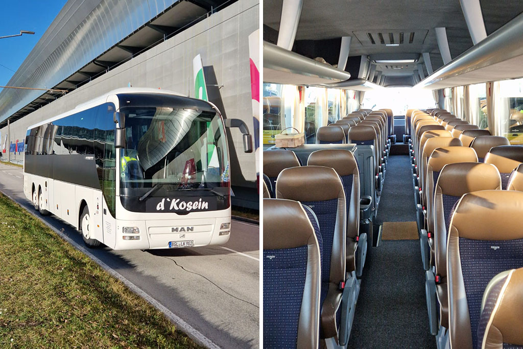 53 Schlafsitze, Klimaanlage, WC, Küche, TV, Anhängerkupplung, usw.